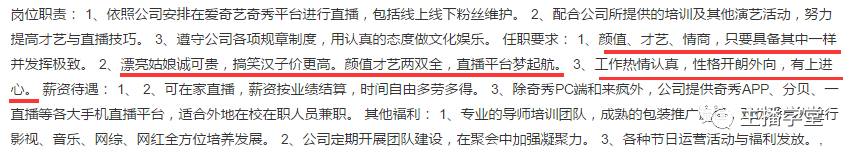 招聘单位、直播公会、经纪公司总是很贪心,总希望主播才貌兼得。既要长得好看,又要会说话,直播不冷场,粉丝都买单。