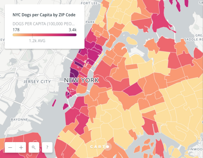 众多原因促使曼哈顿成为“狗狗天堂”,首先要考虑的就是财富与宠物的直接关联。“你会发现,狗狗最集中的区域往往都在曼哈顿中心社区附近,以及上西区、上东区、格林威治村、切尔西等,”Rattner谈到,“这里地价高昂,属于美国最贵的居住区。养狗花费不小,并非城市里的每个人都负担得起。”