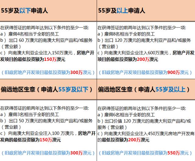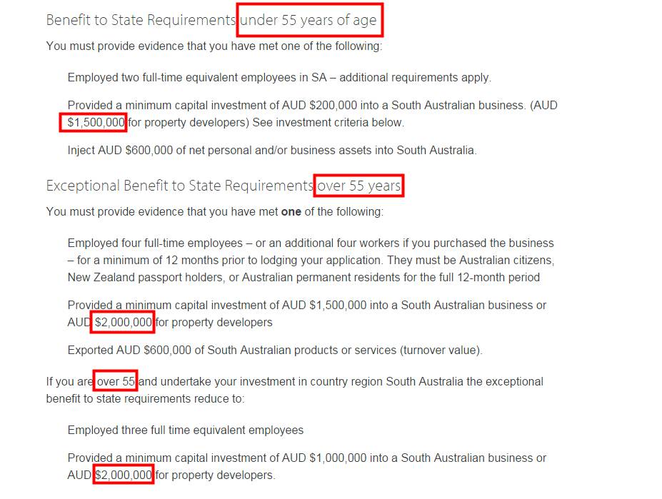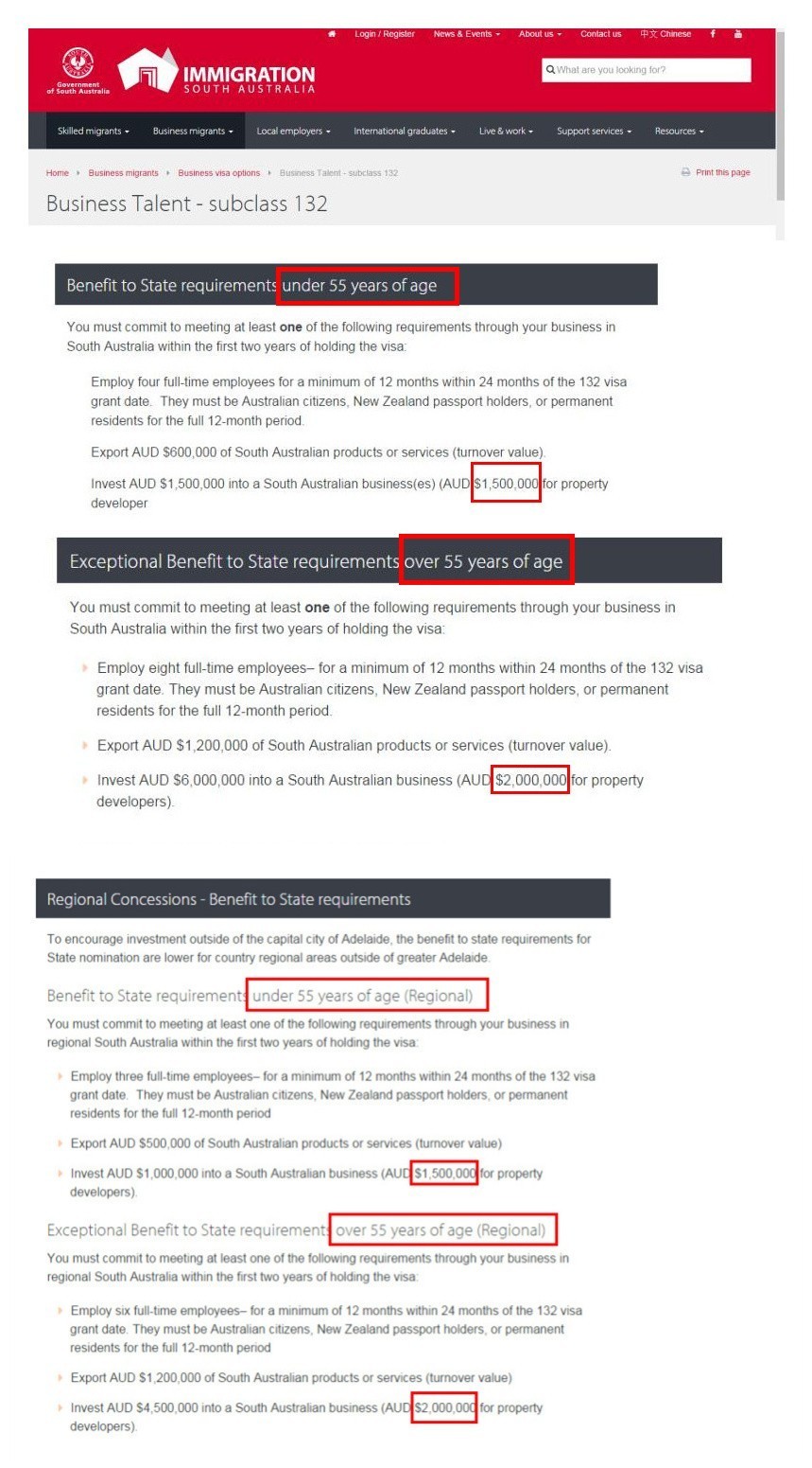 55岁以上的132或188a申请人:投资200万澳元到南澳州的房产开发生意中;