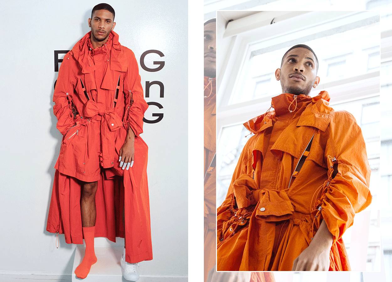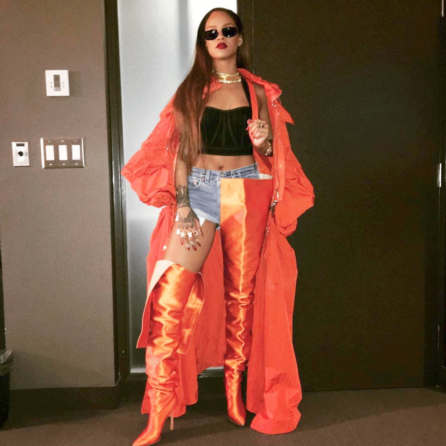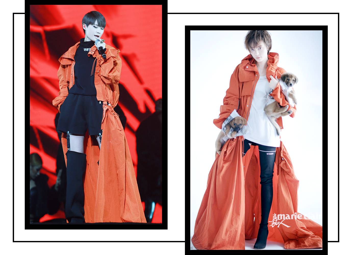 Rihanna(蕾哈娜)身上的这件橙色大衣,就是来自这个系列。