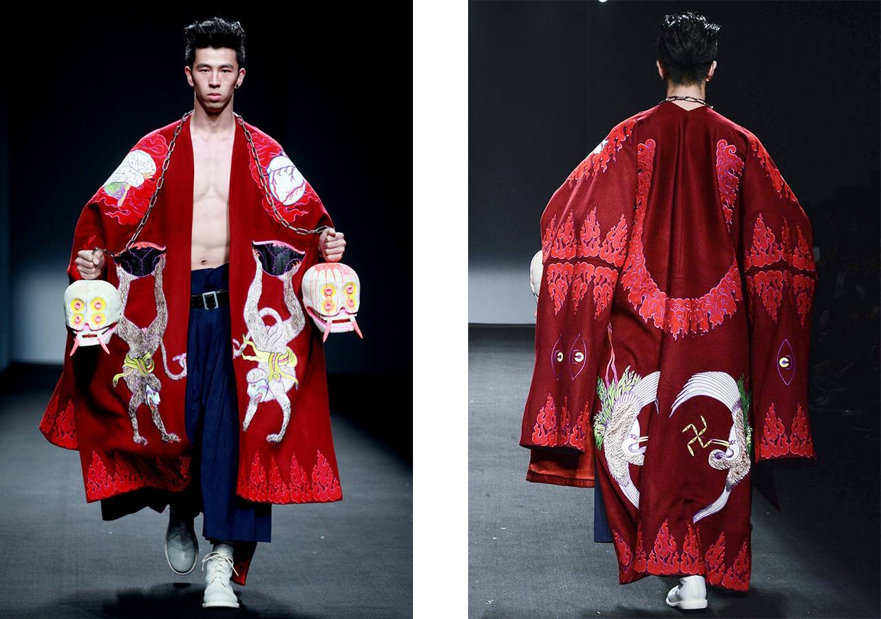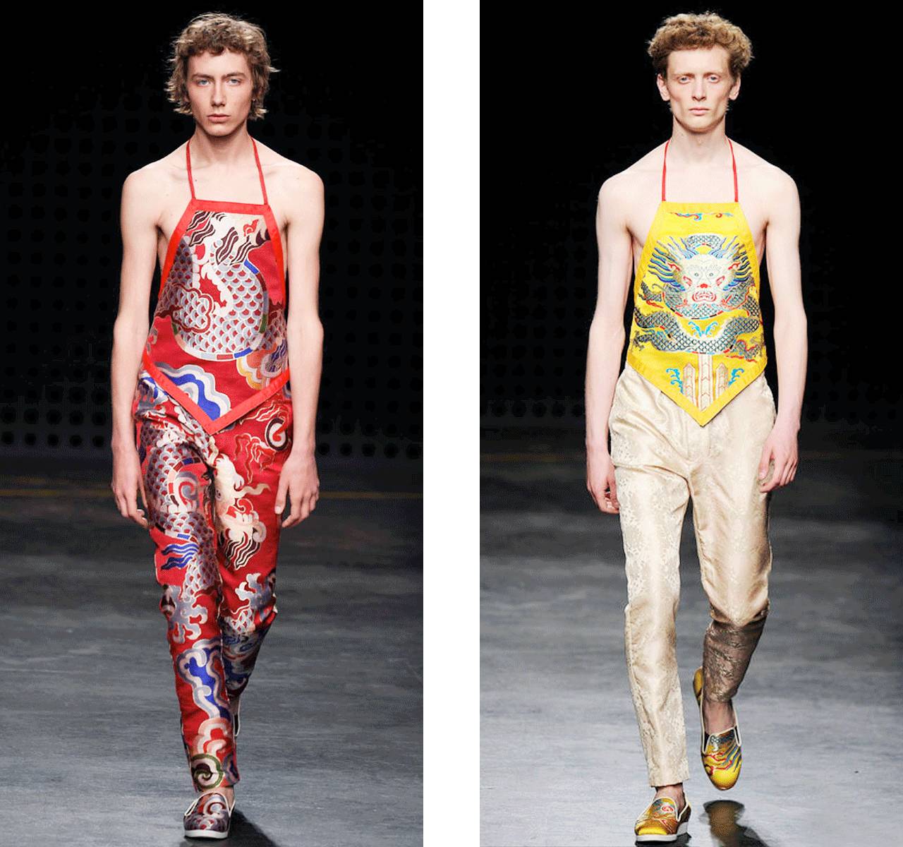 他也很会玩亚洲青年文化,并且每一季都会对中国元素做出恰到好处的新解。从2016春夏系列中时髦的龙头肚兜,