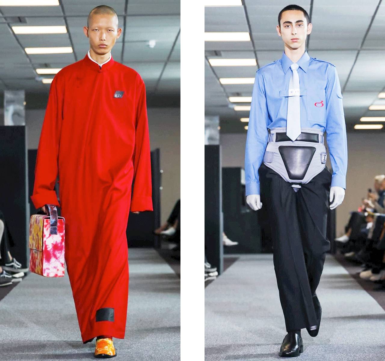 再到2018春夏系列中大红色的长衫,这些传统元素都被他弄出了街头时髦感~
