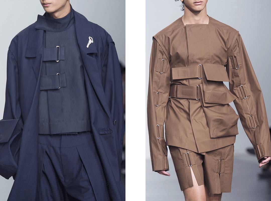有时候,他们会把服装上经常用到的元素,比如扣绊和金属铁圈作为整个系列的重点。