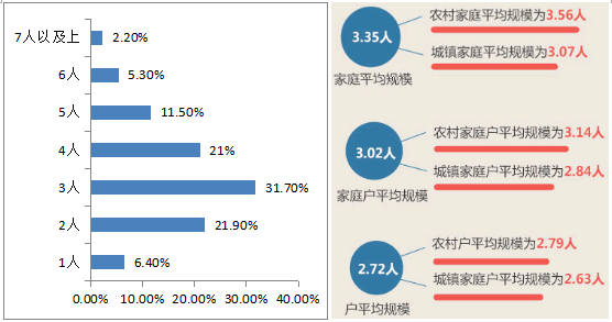 根据2015年国家卫生计生委发布的《中国家庭发展报告》,我国家庭户均人数为3.02人,那么按照以上中国统计局的人均住房建筑面积数据计算,平均每户家庭的居住面积可达到123.2平米。