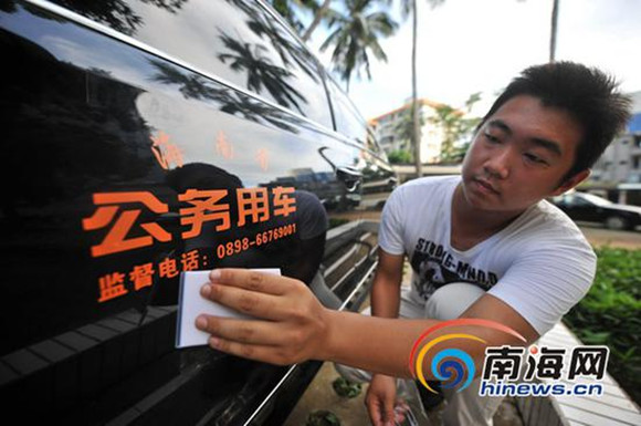 【海南】省直机关公务用车贴橘红色标识 标监督电话