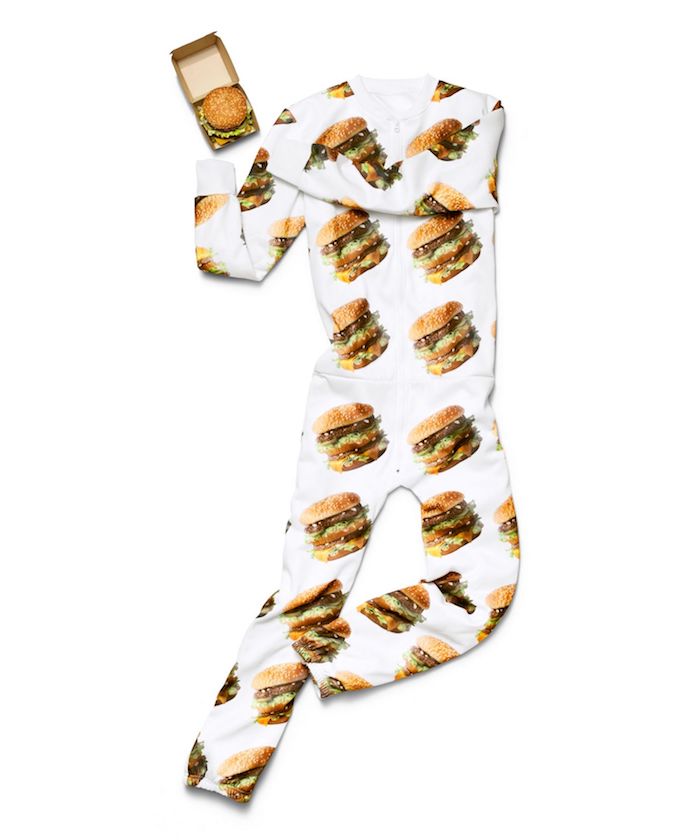 如果你真的想买,麦当劳还有一个真的有在销售的服装系列。整个系列以巨无霸为主题,发售包括T恤、卫衣、雨衣、雨鞋、秋衣裤、睡袋等在内的时尚产品。