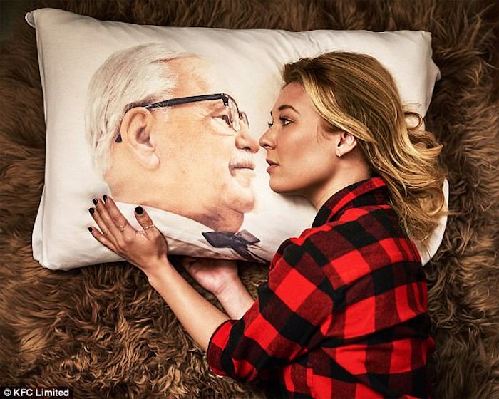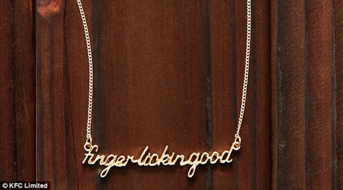 肯德基也不甘人后。在推出炸鸡味的防晒霜和指甲油以后,又推出了一系列时尚产品。T恤当然少不了。其它的产品还包括项链、袜子、上校同款领结等等。比起麦当劳只有汉堡薯条,必胜客只有一张饼,肯德基的灵感来源更丰富些——它还有白胡子上校。