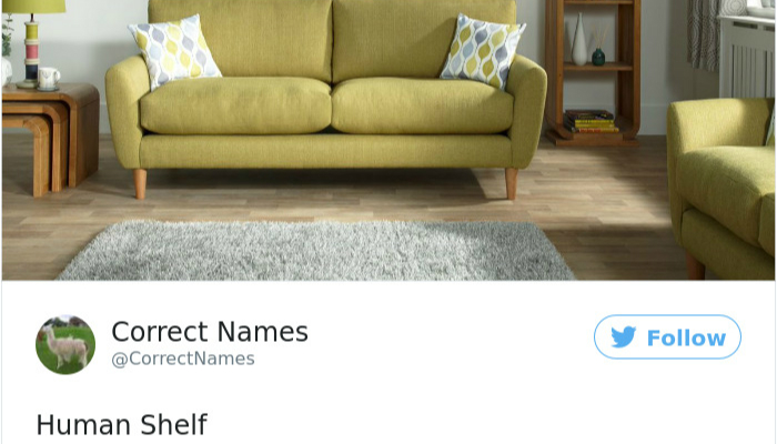 别担心,我们没疯。您可以下拉看看我们到底在说什么。这些关于生活中小物件的搞笑说法来自Twitter账号@CorrectNames(正确命名),一个由Mark Dempsey建立的搞笑账号,这个账号推送各种东西(从水果到动物再到衣服再到身体部位)的“正确名称”。你最喜欢哪个?留言告诉我们吧。