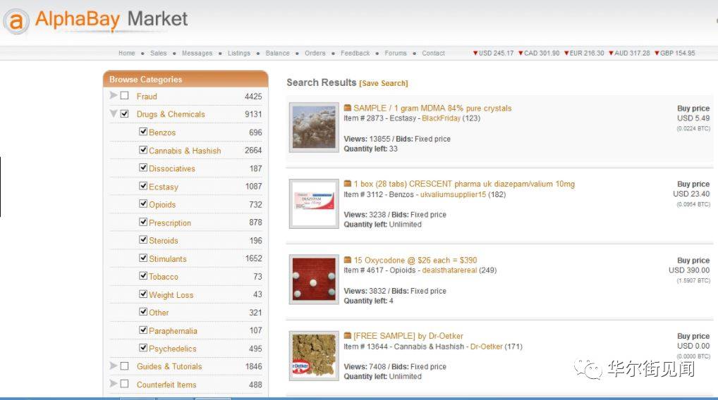 作为最受欢迎的黑市,AlphaBay允许用户以匿名的方式用比特币交易毒品、武器、黑客工具和其他非法商品,比如10000个位于德国的电子邮箱地址和密码。