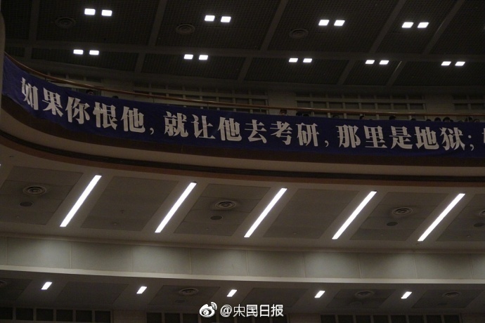 20日,在山东济南山东会堂内,2000名大学生考研族听一个老师上大课,现场场面十分壮观。为了缓解考研压力,在休息时间,培训机构还专门请来杂技、热舞等来缓解压力。