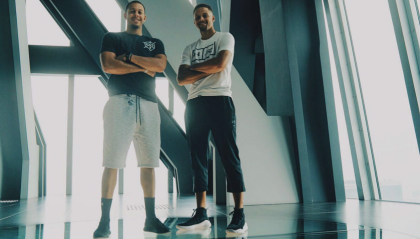 2017年7月22日,率领金州勇士赢得2016-17赛季NBA总冠军的斯蒂芬·库里开启了自己的第三次中国行。受主赞助商Under Armour邀请的金州勇士球星,带来了今年的NBA总冠军奖杯。不过此次中国行,库里不仅带来了总冠军奖杯,还拉上了自己的弟弟——达拉斯小牛队首发控卫赛斯·库里,两人来到北京的第一站是央视大楼。此后,还一起在大宅门“梅府”品京味,体验舌尖上的京派文化,欣赏了京剧《穆桂英挂帅》。