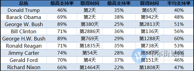 没有对比就没有伤害,奥巴马、克林顿、福特在职期间,支持率从未跌至过35%。