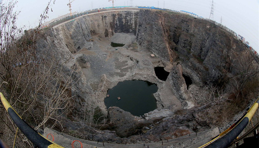 2005年,世茂买下了7处采石坑中最大的一个——深度约80米的横山深坑(又称天马山深坑),一个奇特的建筑计划开始了。