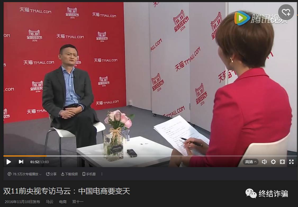 感谢蚂蚁金服友情提供的原始视频来源,央视记者在2016年11月10日对马云的专访,真实场景如下: