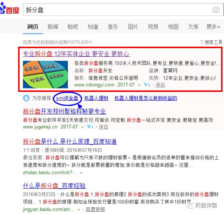 ▲这就是百度“拆分盘”第一条结果,为骗子们提供拆分盘制作服务的专业公司