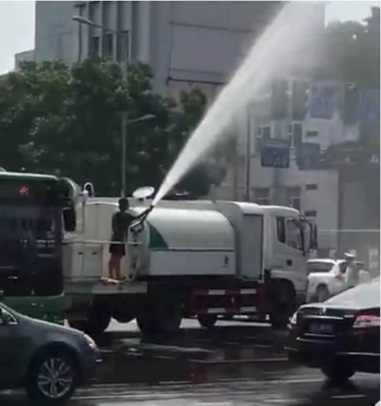 7月23日,山西长治市一交警十字路口执勤现场洒水车“人工降雨”的视频在网络上流传,有网友质疑其为“摆拍”。