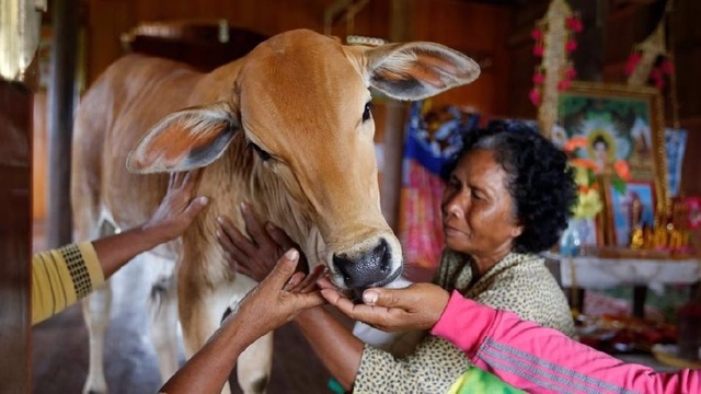 该牛今年3月出生,因“娶新娘”变得名气大增。老妪“嫁牛”经媒体报道后,引来众人前来看个究竟。柬埔寨人95%是佛教徒,认为人在死后会转世。如今KhimHang每天的生活都是围绕该牛,形影不离。有人对老妪的举动表示理解,也有人称老人中了邪了。
