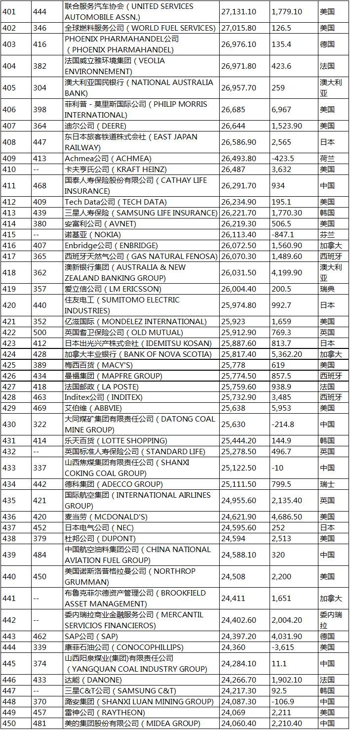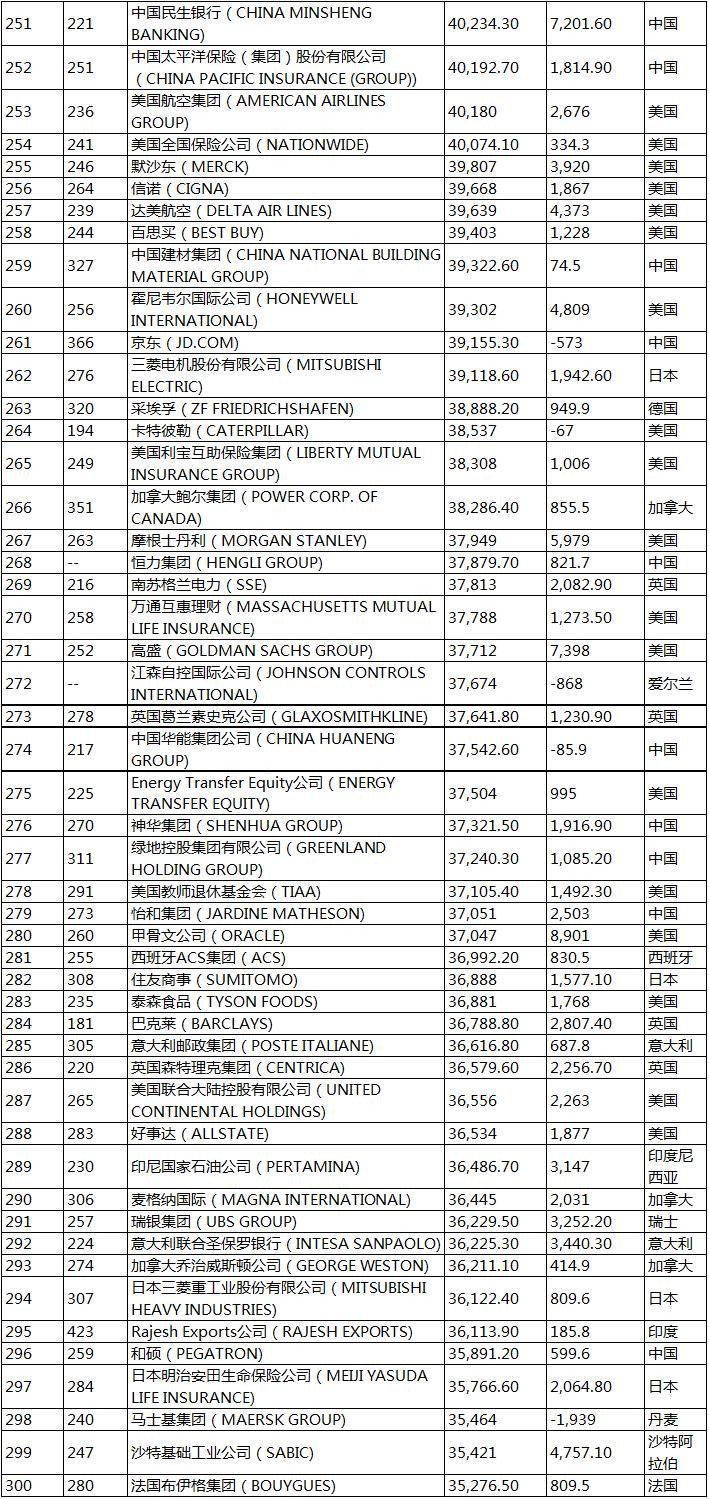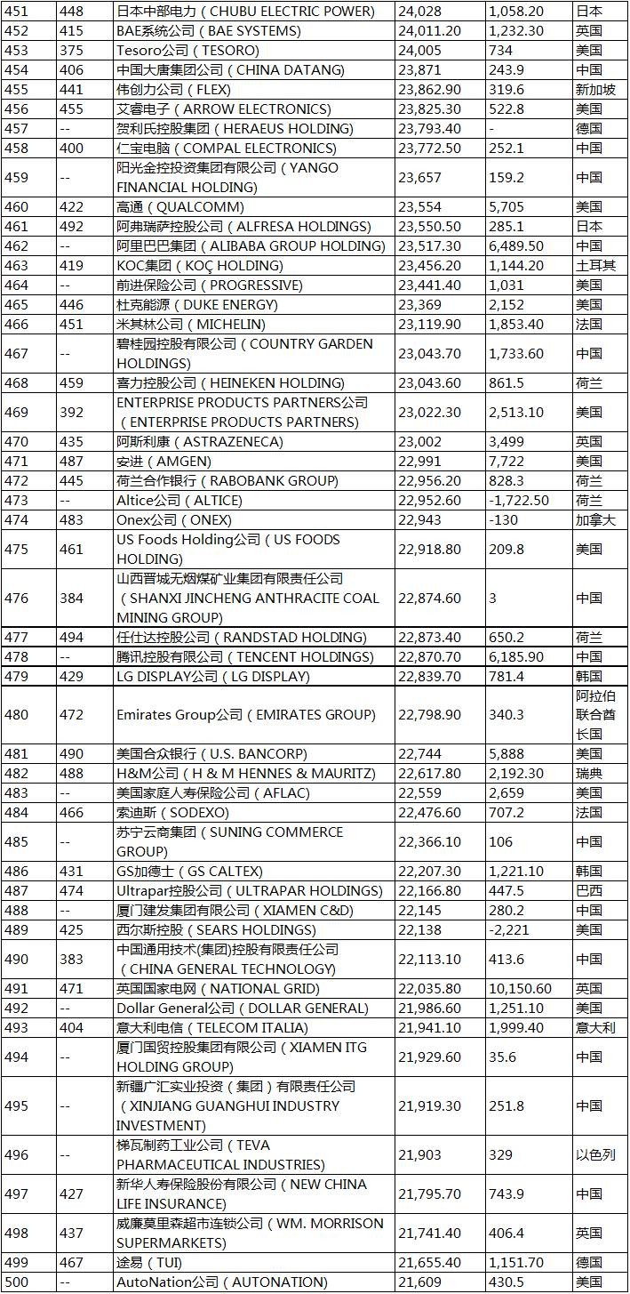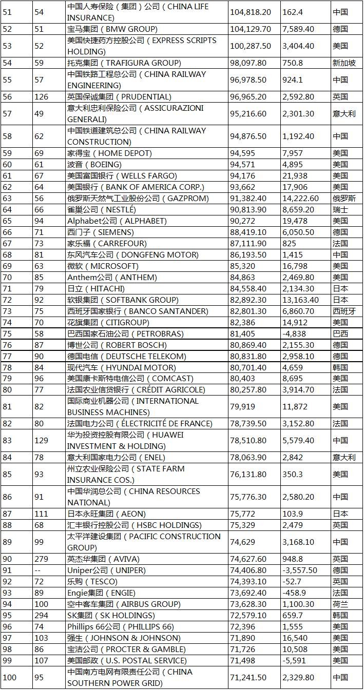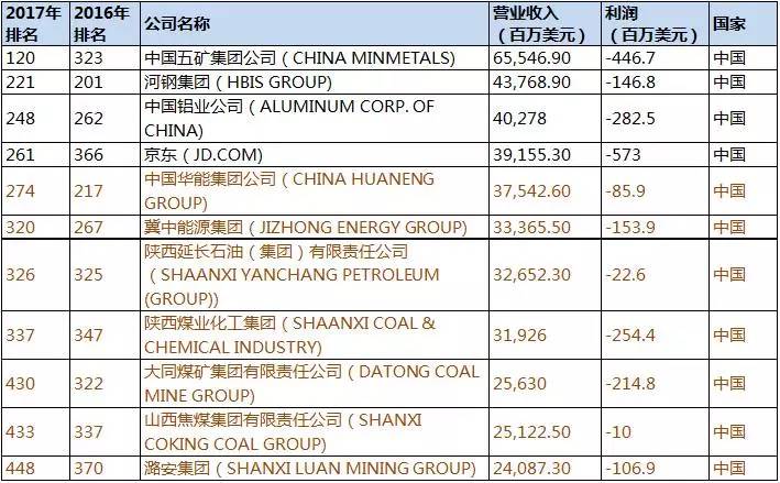 2017《财富》世界500强企业榜单