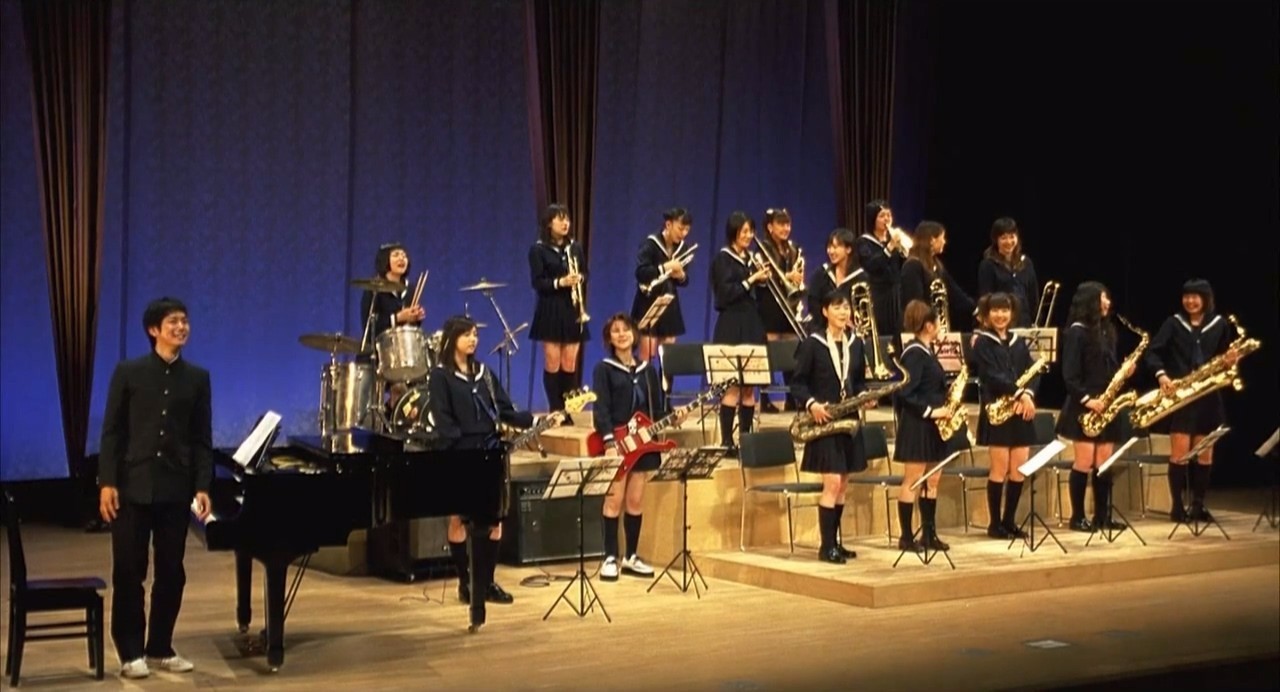 这也是由于剧本中文戏过多偏向男女主(尤其是开篇略有些冗长了),而群戏中又缺乏女主与配角的互动所造成的。青春片中共同奋斗的小团队,最重要的是那些细节里的小互动,比如生活中一次无聊琐碎的交谈,比如演奏过程中一个肯定的眼神。
