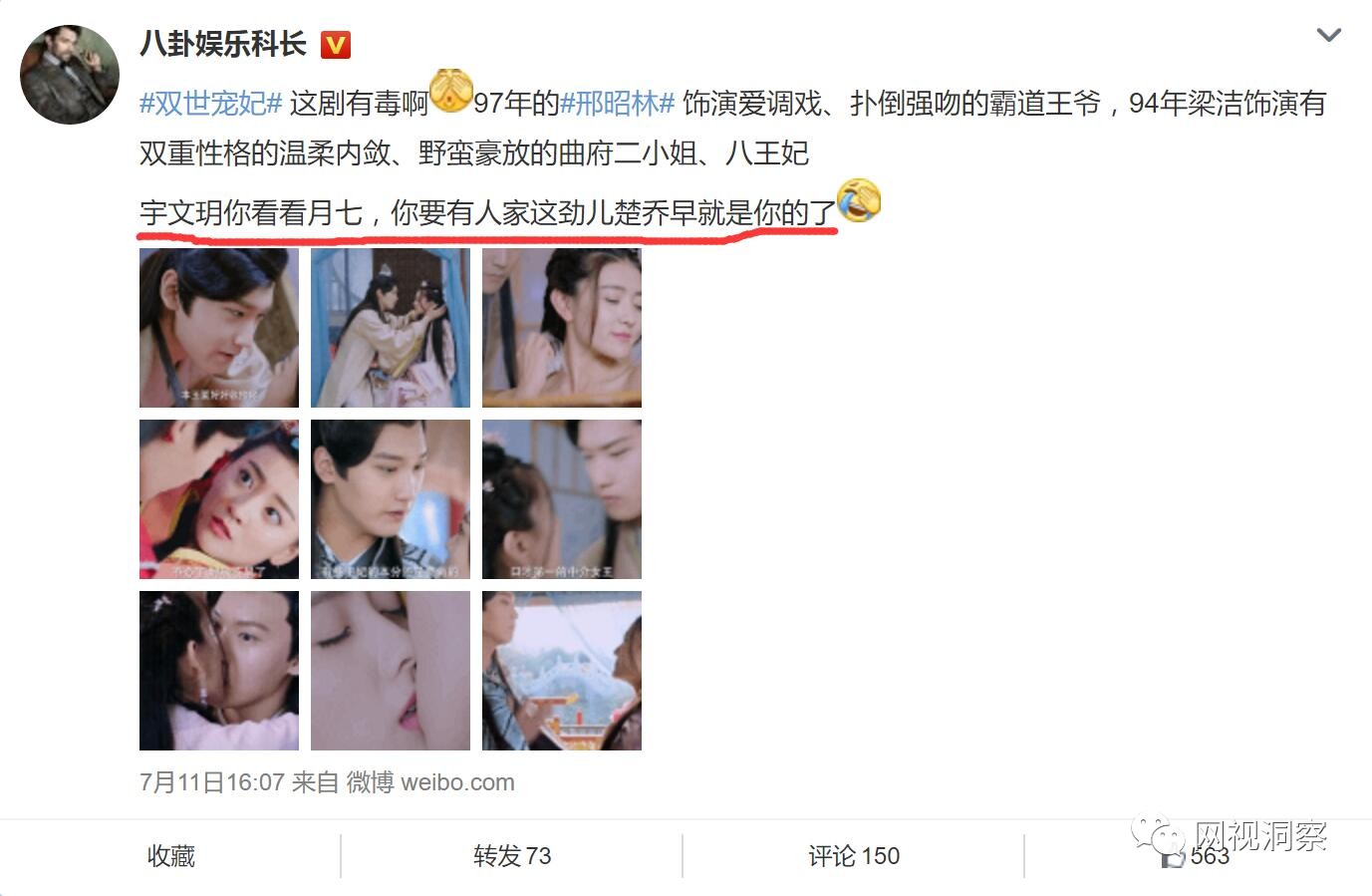 而新晋“有毒”网剧《双世宠妃》中,由于剧中男主角八王爷的扮演者与同期上映的《楚乔传》中的男主角的贴身侍卫月七乃是同一人,因此这种奇妙的“血缘关系”更加方便了《双世宠妃》借《楚乔传》这股东风。