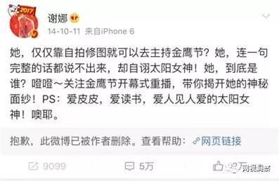 谢娜在金鹰节上主持表现欠妥受到网友批评时如是回复