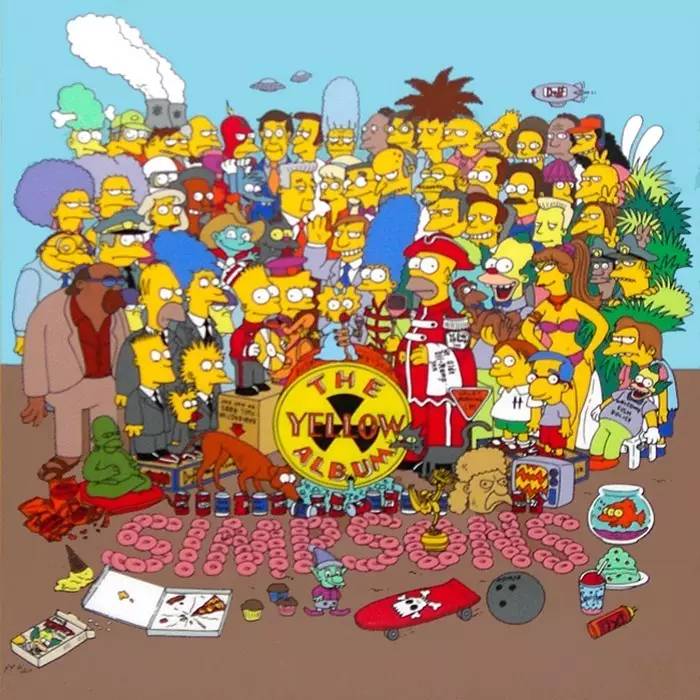 辛普森一家发行了那么多张专辑,让我印象最深刻的是第三张专辑《The Yellow Album》,不过很遗憾这张专辑并没有在任何榜单上取得成绩。最让我忘不掉的,其实并不是专辑里面的歌,而是.......专辑的封面.......咳咳,@The Beatles 。