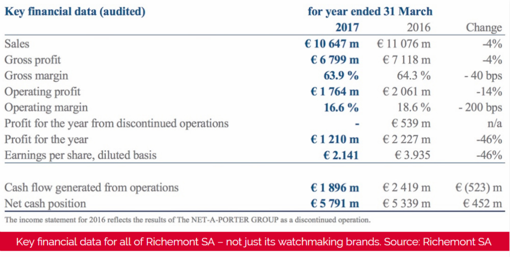 自去年10月瑞士腕表出口量创下7年来最低成绩后,历峰集团开始缩减高层管理人员同时罢黜CEO,在最新的财报中,数据显示截止到2017年3月31日一年的利润骤减46%。