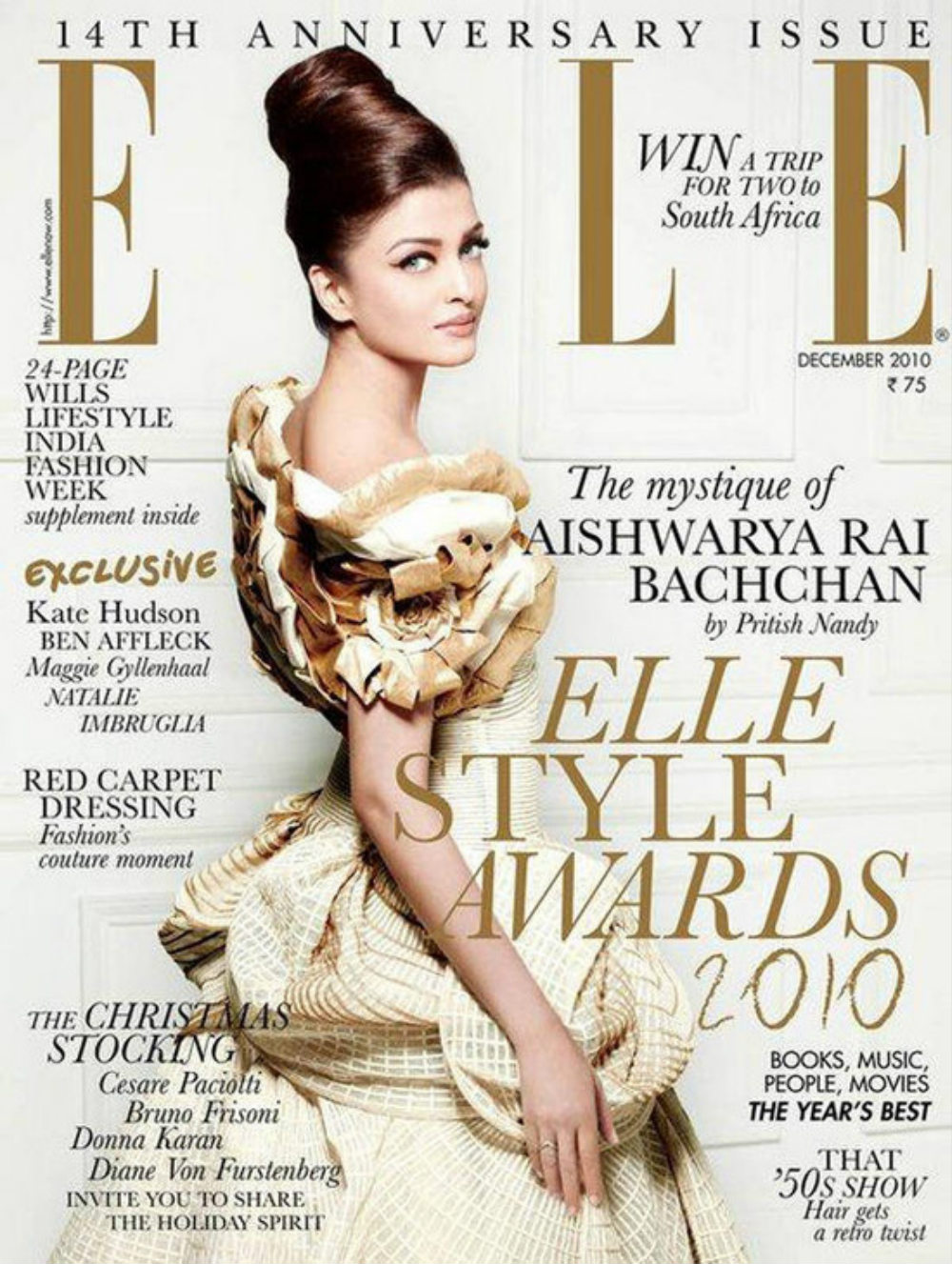 2010年,印度版《Elle》12月刊封面女郎艾西瓦娅.雷(Aishwarya Rai Bachchan)被PS成了皮肤白皙的美女,而这位家喻户晓的电影明星本身实则拥有健康的小麦肤色。