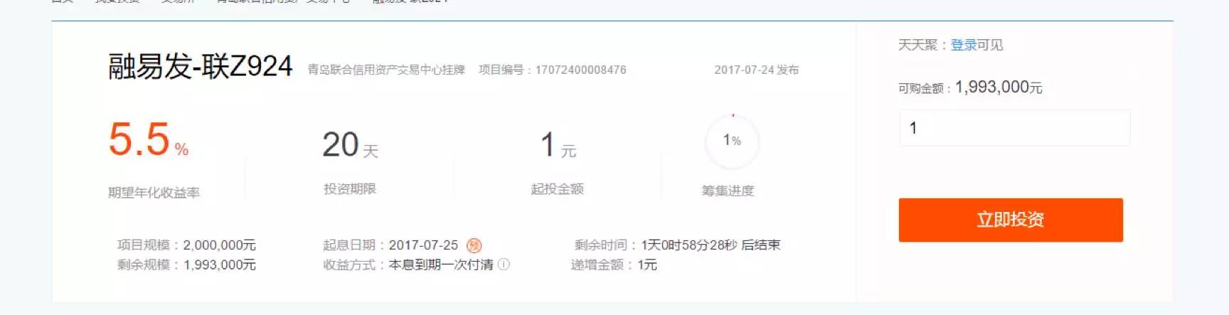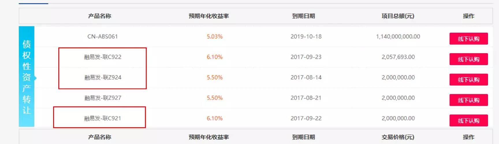 信交所全称为“青岛联合信用资产交易中心”,与海融易同为海尔金控旗下企业,目前成交额约为661亿,目前5款在售产品,其中三款可在海融易平台进行投资。