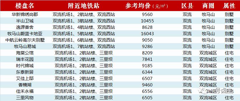 /双流机场1、2航站楼附近楼盘及其参考均价/