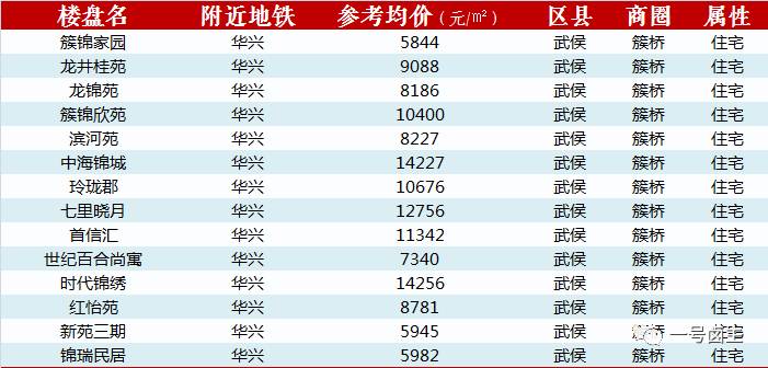 /簇锦站附近楼盘及其参考均价/