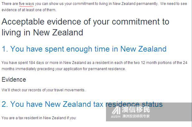 澳信移民专家表示,在递交永久回头签之前的2年,就要做好规划,可以选择建立生意、进行投资,或者满足居住要求。一般来说,新移民都会选择满足第1个条件,即递申请前2年,每年在新西兰呆184天。这是5个条件中最容易可行性最高的1个条件。