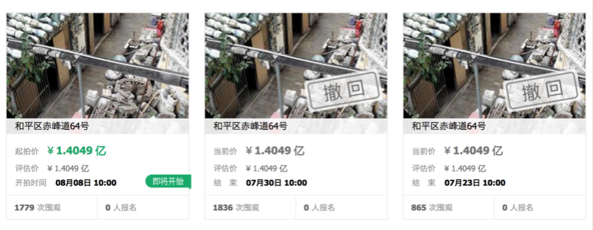 按照阿里巴巴拍卖平台的最新信息显示,“瓷房子”的拍卖日期为2017年8月8日。实际上,在这之前,拍卖公告已遭遇过两次延期。