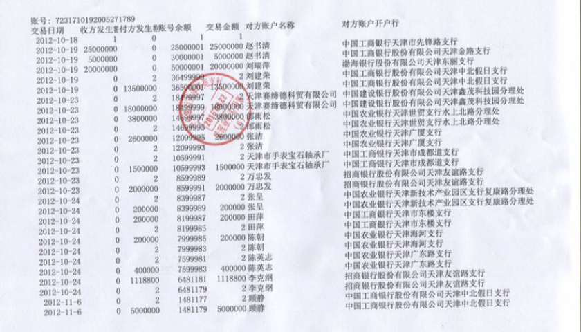 但所谓的“规矩极了”却在日后埋下隐患。2013年秋,鑫泽公司的副董事长辛建生找到张连志,要求其还款1亿元。凭空多出来的4000多万令张连志感到疑惑。而辛建生则拿出了打款纪录,纪录显示,2012年10月,一笔5000万的款项共分3次打入了粤唯鲜公司财务的个人储蓄卡里。