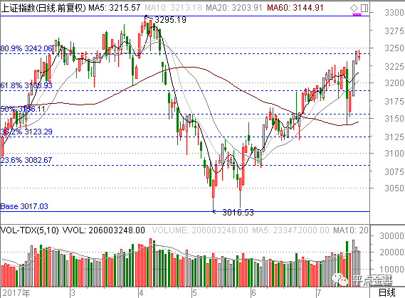 目前来看,上证指数在面对前高3295.2点这一挑战中,只有黄金分割位3242点这一阻力位了,这一阻力位一旦突破,按技术分析的观点,大概率会突破前高,即投资者有望再见3300点。
