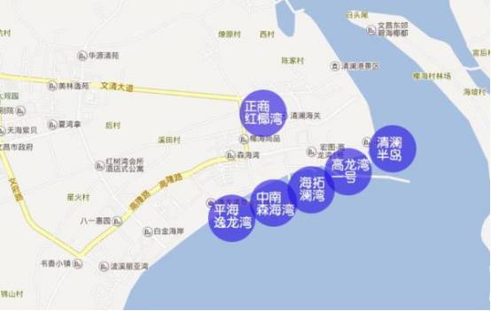 从地图中可以看出来文昌的楼盘主要分布在三个区域,月亮湾片区、淇水湾片区、高隆湾片区。每个城市的定位发展、经济文化都有差异,不同区域的楼盘价值也不同。