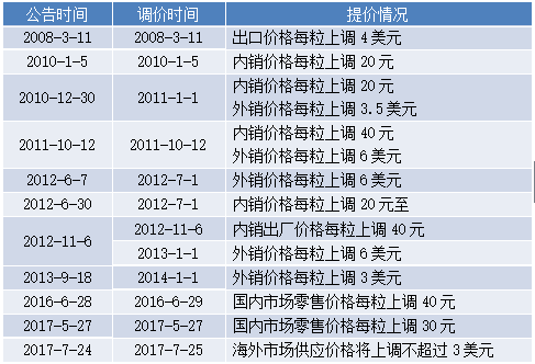 原料的稀缺决定了片仔癀无法实现大量生产,也决定了不可能通过扩大销量来实现更高的盈利,提价成为保证利润增长的主要途径,片仔癀因此也被称认为是靠涨价撑业绩。
