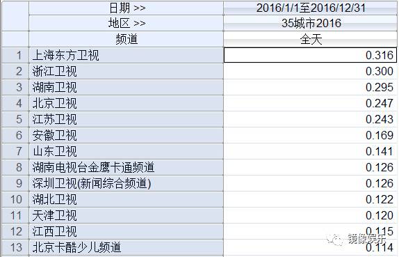 2016年度电视台收视排行榜