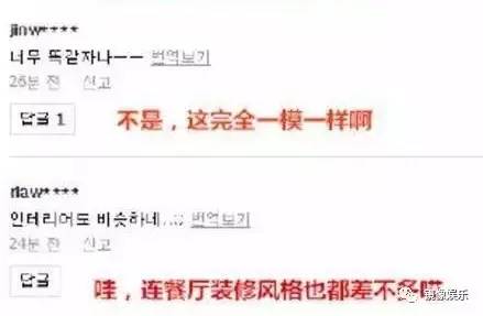 《中餐厅》的抄袭丑闻也迅速传到了韩国网民的耳朵里,由于中国综艺频频抄袭韩国,最近的《中国有嘻哈》被指抄袭《show me the money》,韩国网友便公开声称中国为“抄袭国”。对于《中餐厅》的抄袭,韩国网友继续疯狂吐槽:“不是吧,你们是人口15亿的大国,那么多综艺PD们就那么想不出新创意吗?”