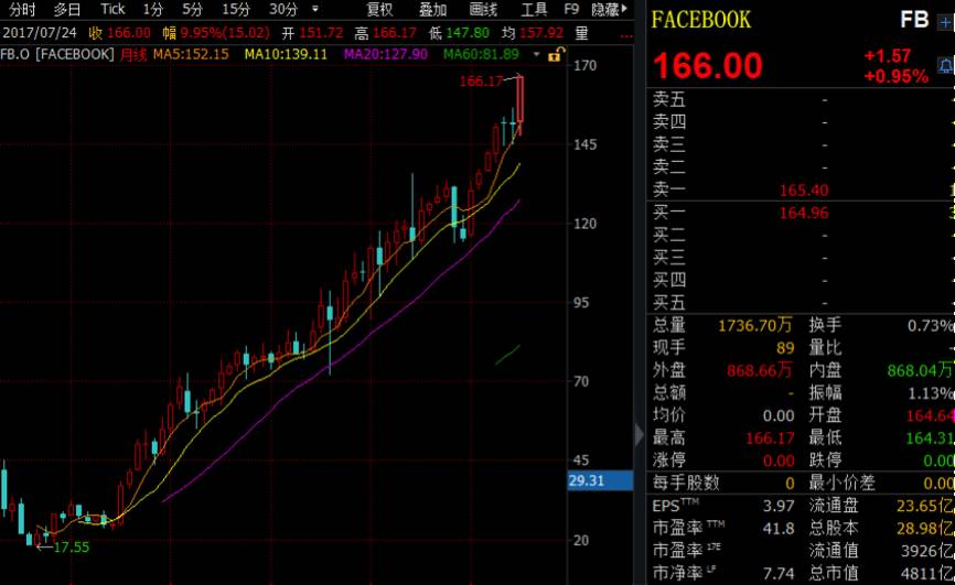 而Facebook的股价在近期不断创下历史新高,市值也直逼5000亿美元。