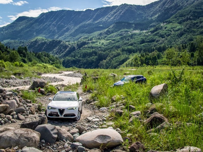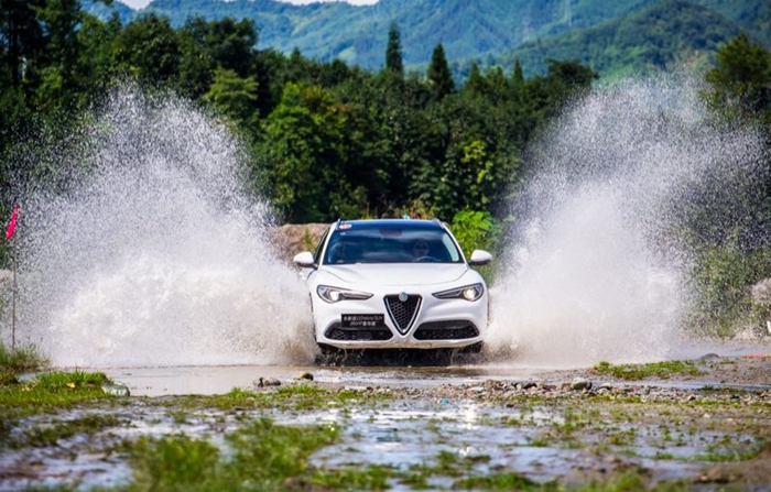在越野能力上,Stelvio也表现除了主流的水准,在山脚下的乱石河滩,高低错落的河床石堆和急湍的河溪都在Stelvio良好的通过性和智能扭力分配系统下轻松通过,一个简易的交叉轴对于这辆车来说也不是难事儿。当然,Stelvio的产品定位上,这里所有的路况应对均由越野电脑系统完成。
