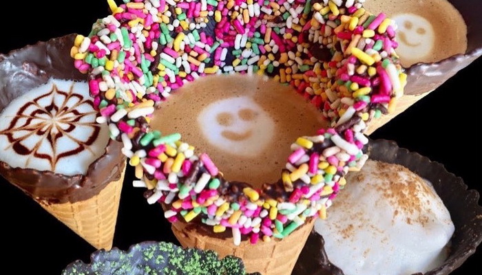 由于#coffeeinacone#(甜筒咖啡)这个话题在Instagram上非常流行,因此世界各地的许多咖啡馆都开始出售这种奇特的搭配。然而,甜筒咖啡馆似乎是唯一一家在这方面有专业水准的咖啡馆。根据甜筒咖啡的潮流趋势,总部位于东京的店开发出了更多种类的甜筒咖啡,让爱吃甜食的咖啡爱好者能体验更多不同的风味。顾客可以选择蘸上薄薄一层巧克力的甜筒咖啡,也能选择撒有大量抹茶粉的甜筒咖啡,这表明,这些让人喜爱的,看似简单咖啡和甜筒的组合,也蕴藏着许多可能性。