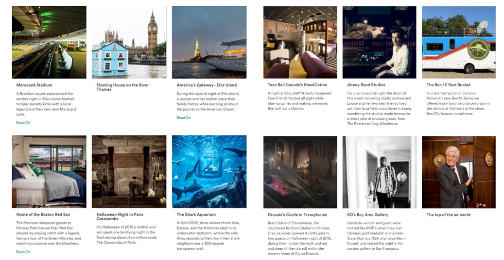 其实在“欧文之家”以前,“奇屋一夜”在中国已经举办了两场,由超模刘雯和明星彭于晏当房东,分别在东方明珠和“秘密基地”以类似的形式招待房客。但不论是欧文、刘雯还是彭于晏,我们不难发现Airbnb在中国“奇屋一夜”更多是借助明星来进行推广的,而相比起来在国外,该项目却更多注重在意想不到的地方提供难以忘怀的入住经历。