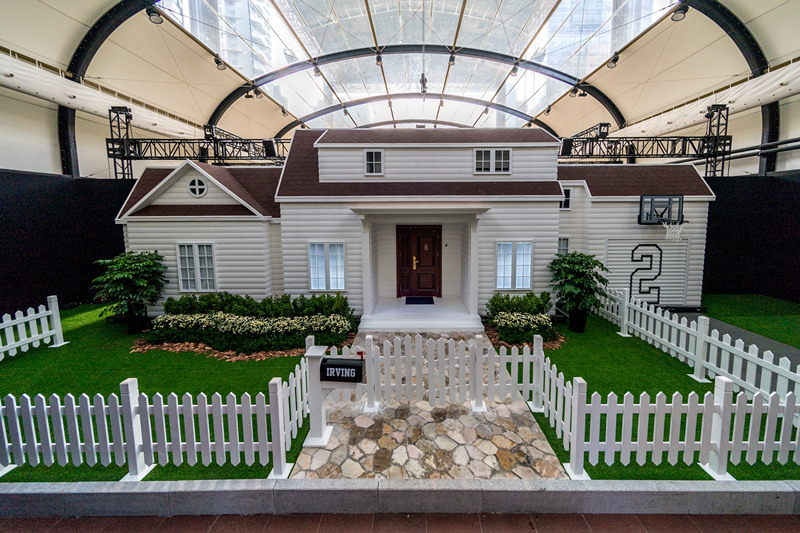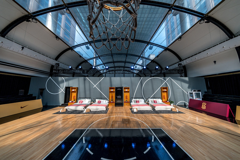 身为铁杆球迷,他们最喜欢的还是由半个篮球场改造而成的卧室—球场底线一侧是真实的球筐,上方悬挂着记录欧文职业生涯的荣誉锦旗;中场线一侧四张舒适柔软的床榻并排放置,每张床边还有真实的克利夫兰球队储物柜做床头柜。就在这儿,辛盛恺和小伙伴们与欧文度过了一段快乐时光,还一起打了场球。
