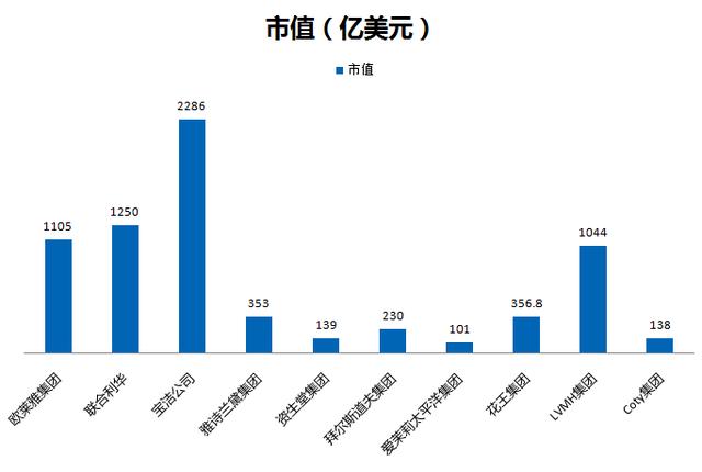 注:这十家公司中,联合利华、宝洁、贝尔斯道夫、花王、LVMH 等五家的业务除美妆以外,还覆盖食品、家居、烈酒、时装皮具等其他广泛行业,其市值仅作为参考。