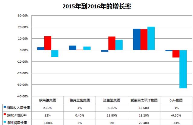 各公司销售收入、EBITDA和净利润相对上年度增长率的对比: