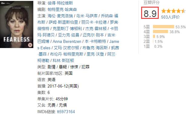 这剧一共六集,目前出到第五集,豆瓣评分8.9。