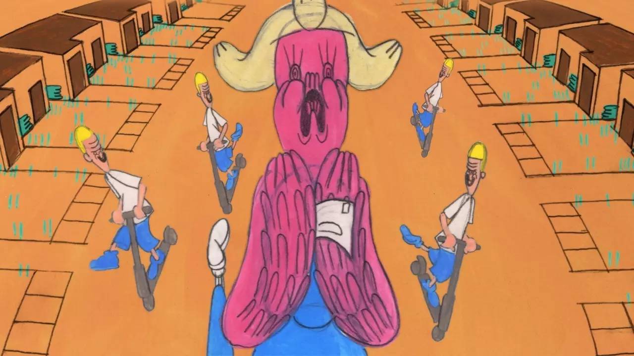 Matt Reynolds:整部电影是用纸笔手画完成的。之后动画初稿用水粉画颜料上色,再用铅笔修整一遍,然后再被扫描并在After Effects里进行制作。整个过程花了两年时间。