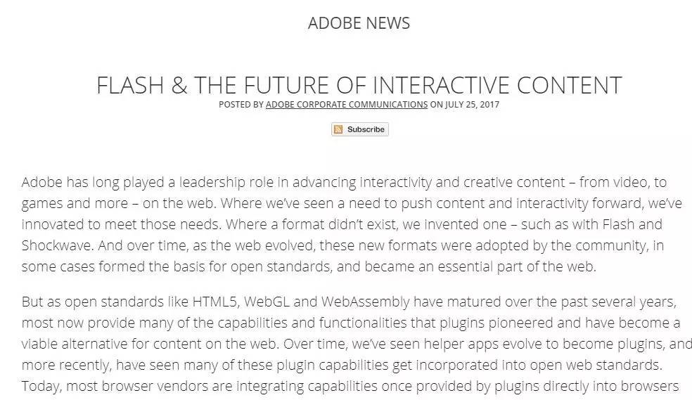 其实 Flash 一直在苟延残喘地活着,而产品众多的 Adobe 也不指望它过日子,Flash 退市是迟早的事情。