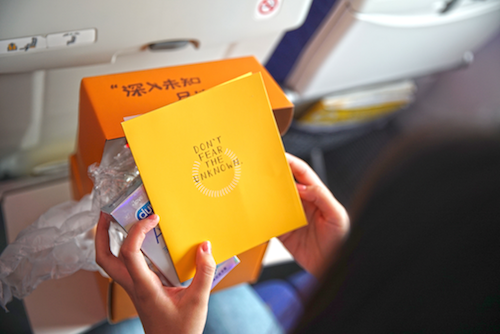 事实上,让避孕套冲向上万米高空是一次蓄谋已久的策划,也是一个星期前“小黄盒”系列营销的后续,或者是“完结篇”。而酷航只是小黄盒众多合作的场景之一,真正的主角是杜蕾斯和蚂蜂窝。